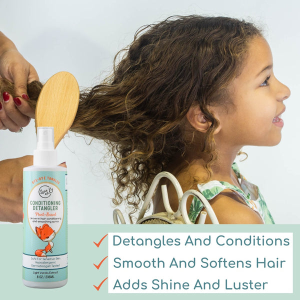 Lane and Co Double the detangling, double the fun! Our plant-based Conditioning Detangler comes in a two-pack, because knots don't take days off. Infused with avocado and coconut oils, this vegan formula smooths, softens, and adds shine while tackling tangles. Hypoallergenic, dermatologist-tested, and free from harsh chemicals-because happy hair starts with safe ingredients!